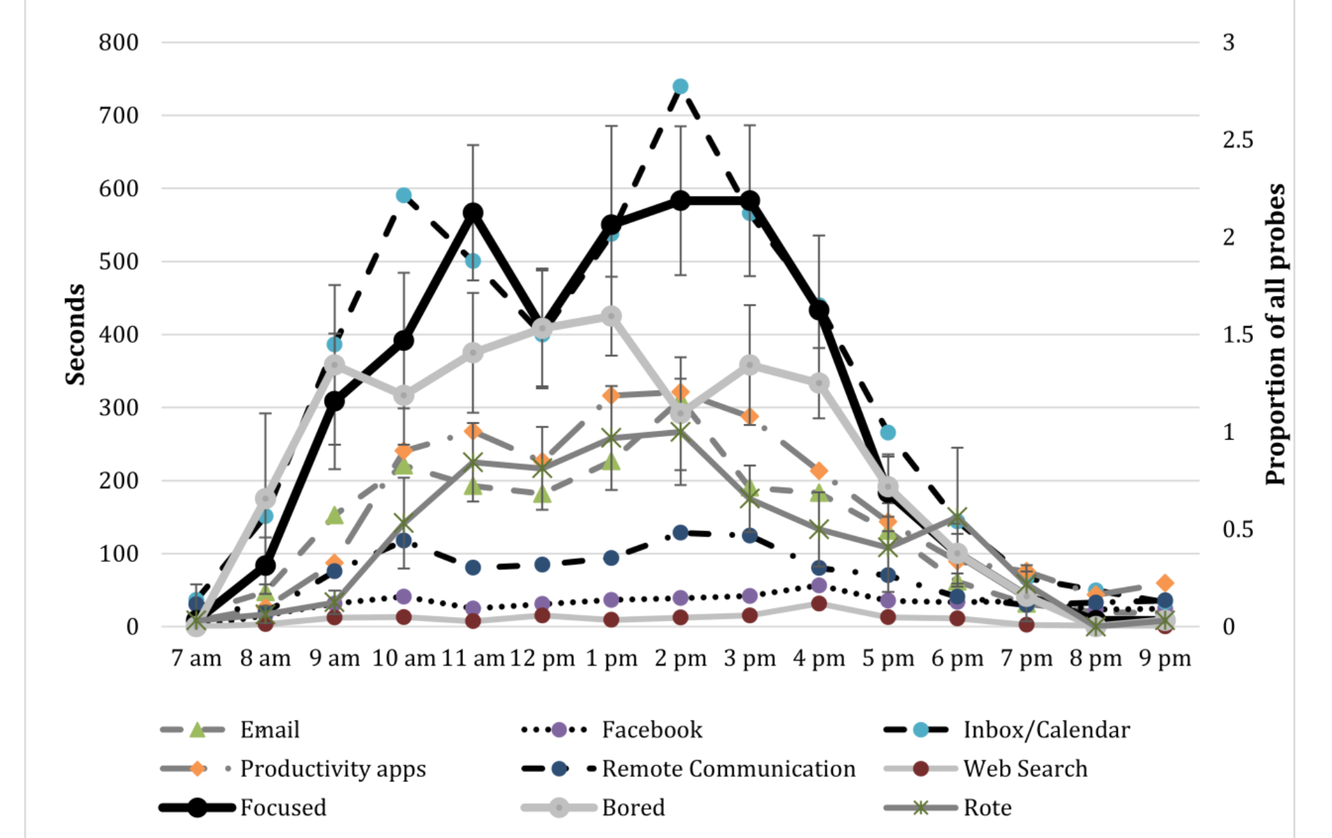 Mark, G., Iqbal, S., Czerwinski, M., & Johns, P. (2014). Bored Mondays and focused afternoons. Proceedings Of The 32Nd Annual ACM Conference On Human Factors In Computing Systems – CHI ’14.